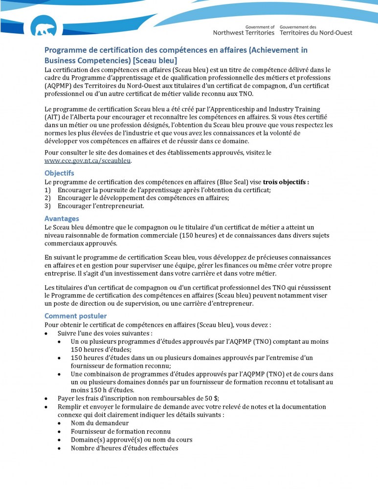 Programme de certification des compétences en affaires (Achievement in Business Competencies) [Sceau bleu] (pdf/201.12 Ko)