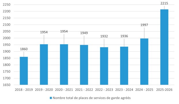 Table: Nombres total de places de services de garde agréés